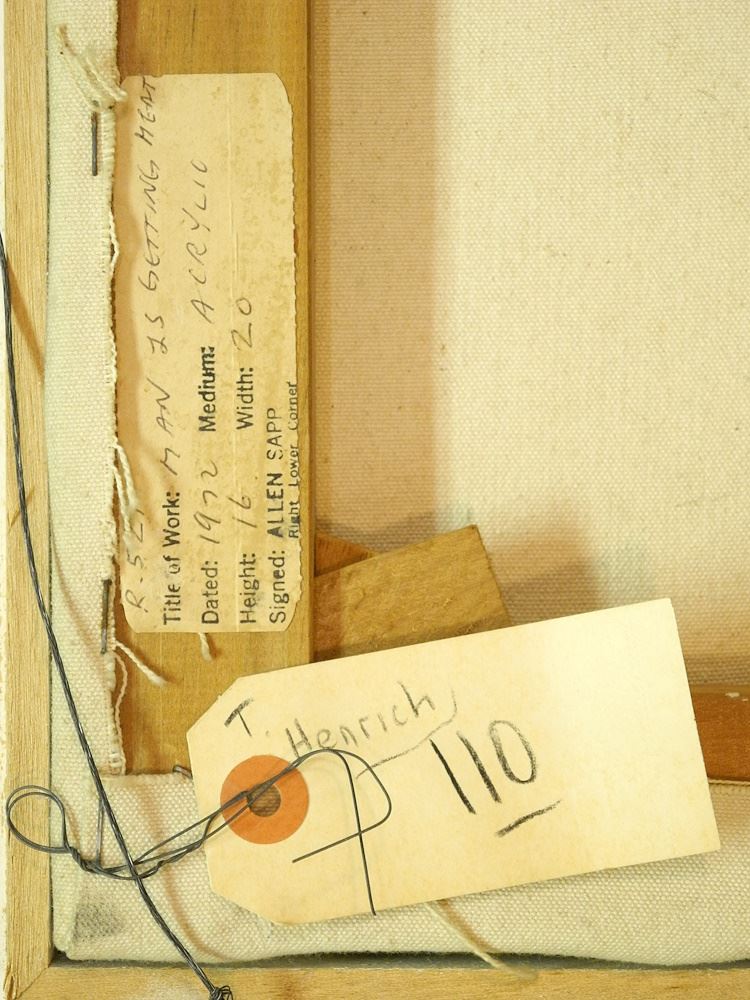 LOT 147 Acrylic on Canvas Signed Allen Sapp, 16"x 20", "Man is Getting Meat", Dated 1972 Verso. Estimate: $2,000 - $3,000 Sold For: $2,000 Auction Date: Tuesday, February 27 2024 at 4:00 PM