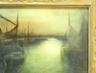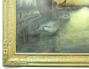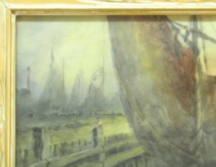 Watercolour signed E. (Emile) Morel, 19 1/4" x 27", "Dutch Harbour Scene"