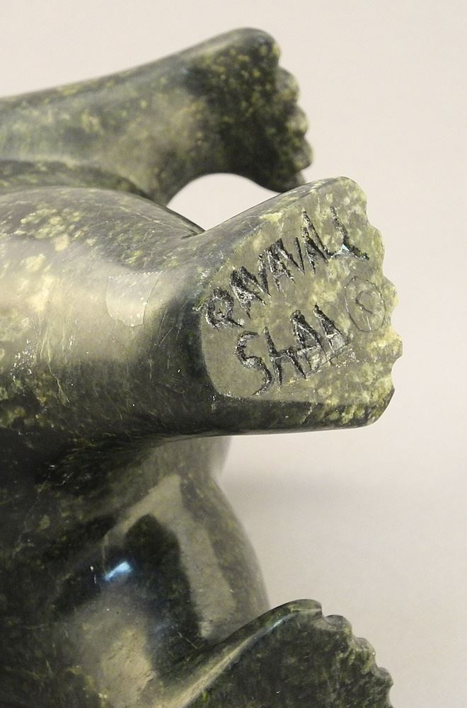 Inuit Stone Sculpture signed Quavavau Shaa, 12"L, "Standing Bear"