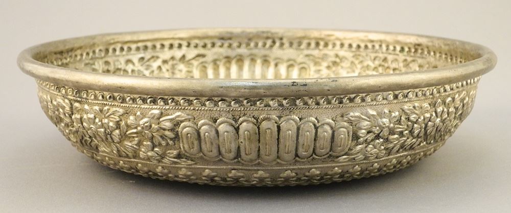 LOT 63 Indonesian Silver Alloy Embossed Bowl, 2 1/8" x 8 3/4" Diameter. Estimate: $100 - $200 Sold For: $140 Auction Date: Tuesday, February 27 2024 at 4:00 PM