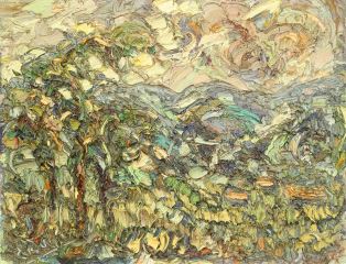 Oil on Canvas signed E. Dulfer, Impasto Landscape, 16" x 19 3/4".