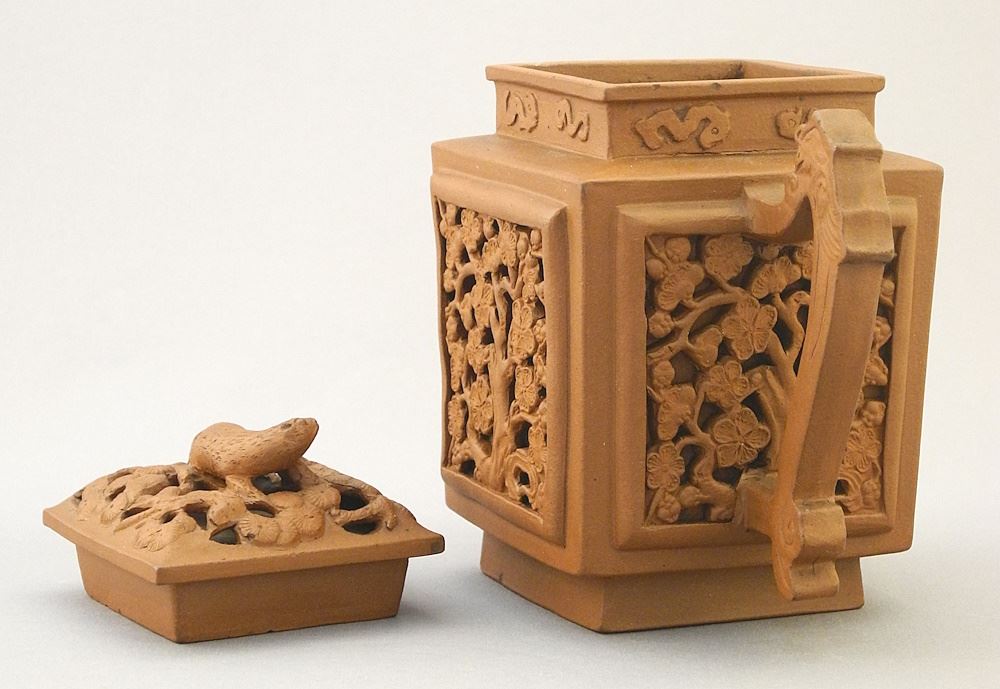 LOT 113 Chinese Yixing Ware Double Walled Teapot, 5" x 3 1/8" x 5 1/2". Estimate: $300 - $500 Sold For: $350 Auction Date: Tuesday, February 27 2024 at 4:00 PM