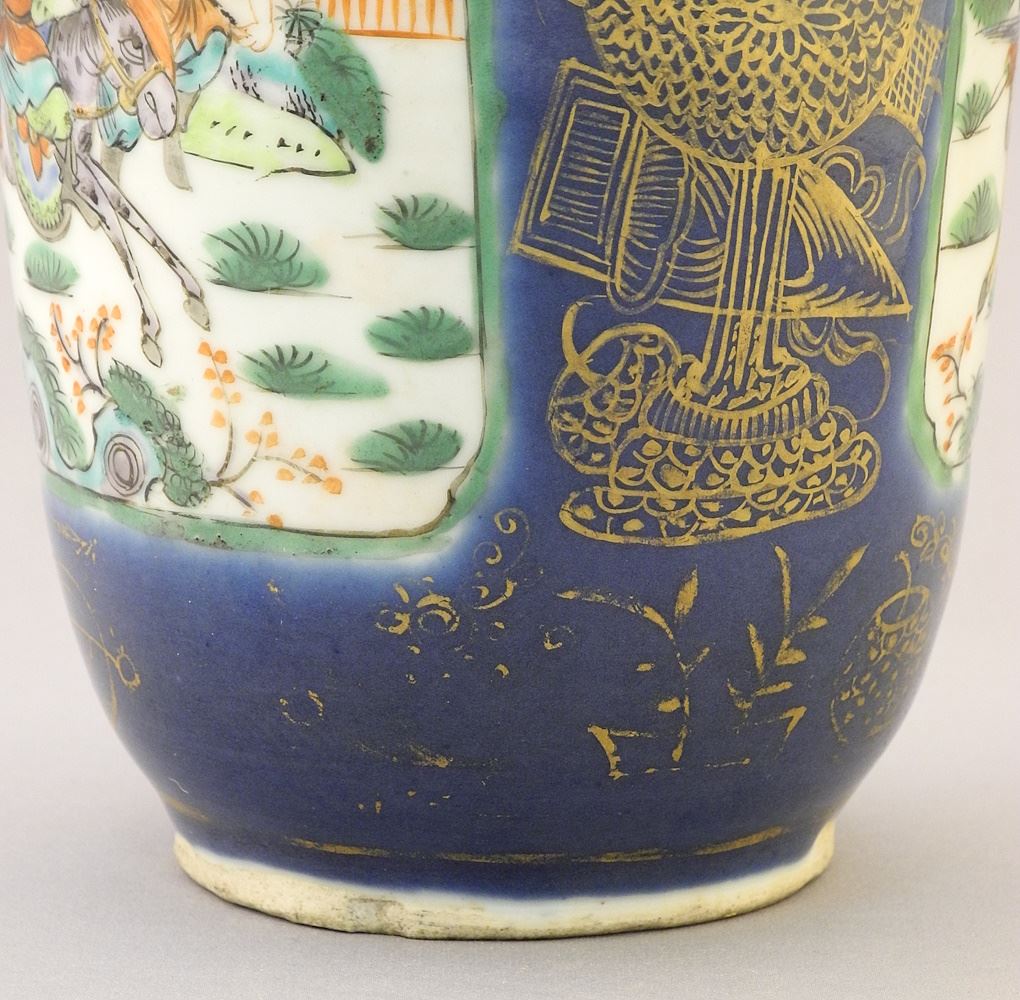 Chinese Gilt Blue Porcelain Vase with Wucai Reserves, with BADA Seal, 10"H.