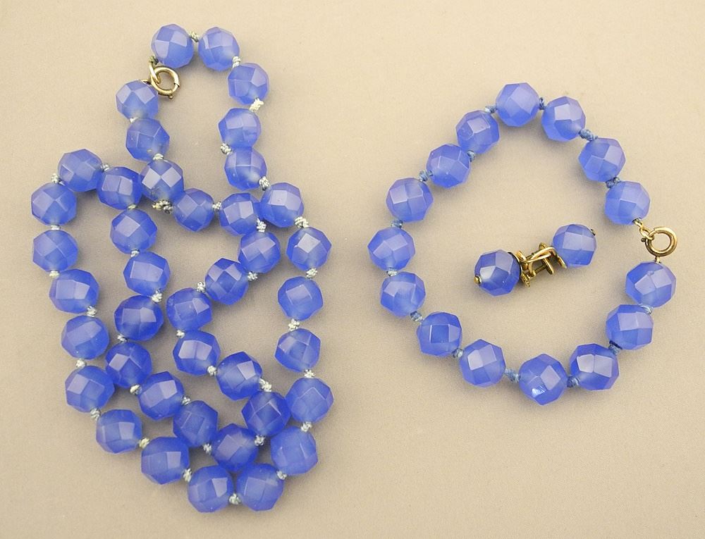 Chinese Art Deco Blue Glass Demi- Parure, Necklace 20"L.