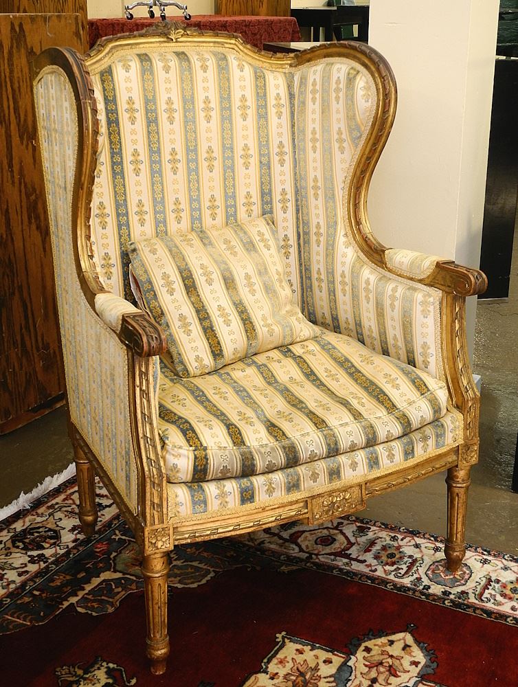 Pair of Louis XVI Giltwood Wingback Armchairs.