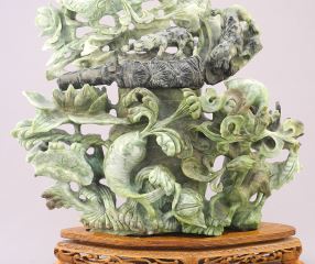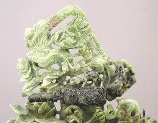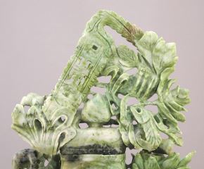 LOT 77 Chinese Green Hardstone Carving on Stand, 12"H. Estimate: $500 - $800 Auction Date: Tuesday, February 27 2024 at 4:00 PM