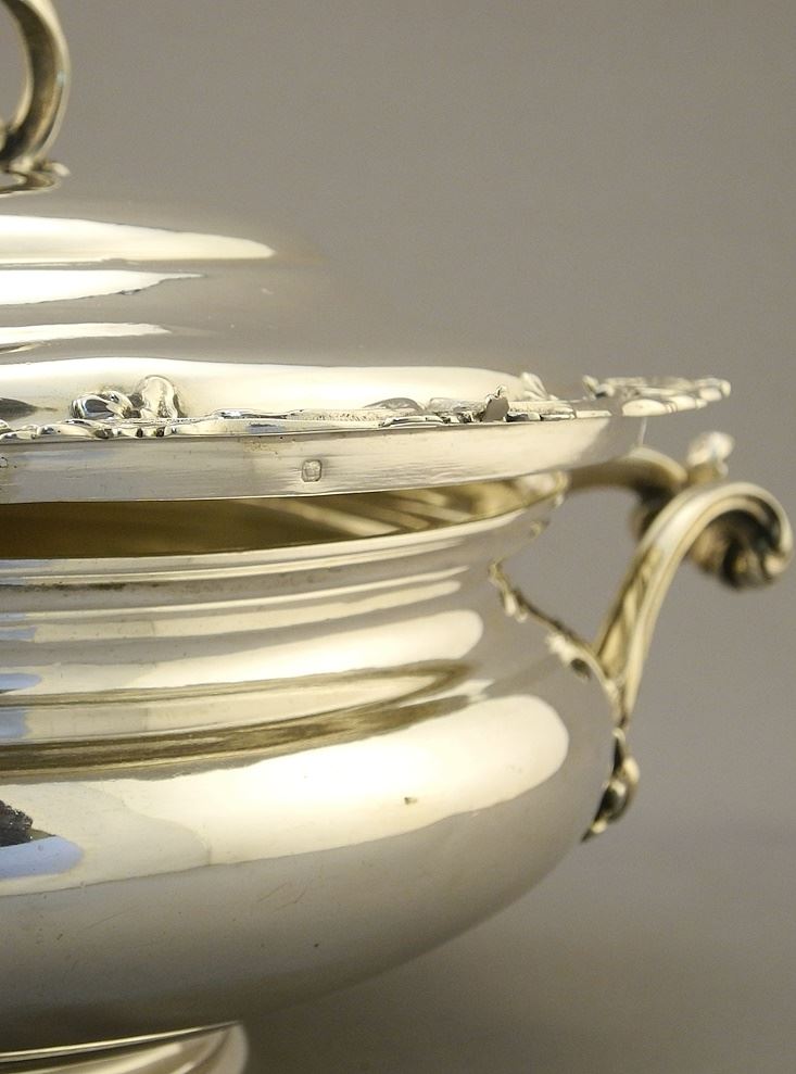 French First Standard Silver Covered Serving Dish, 6 1/8" x 11 1/2" x 8 1/4", 1069 Grams.