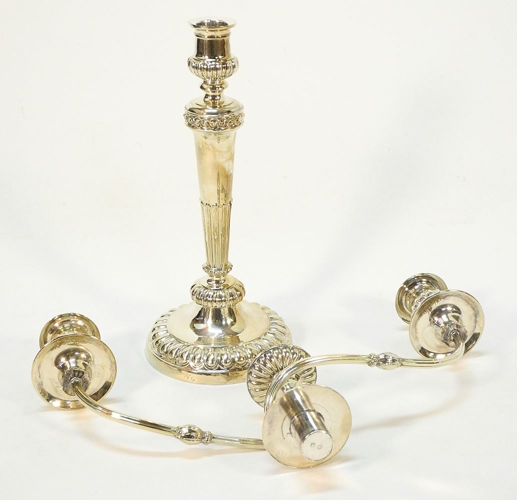 Pair of Matthew Bolton Old Sheffield Plate Convertible Candelabra, 22 1/2 " x 17 1/4" x 6".