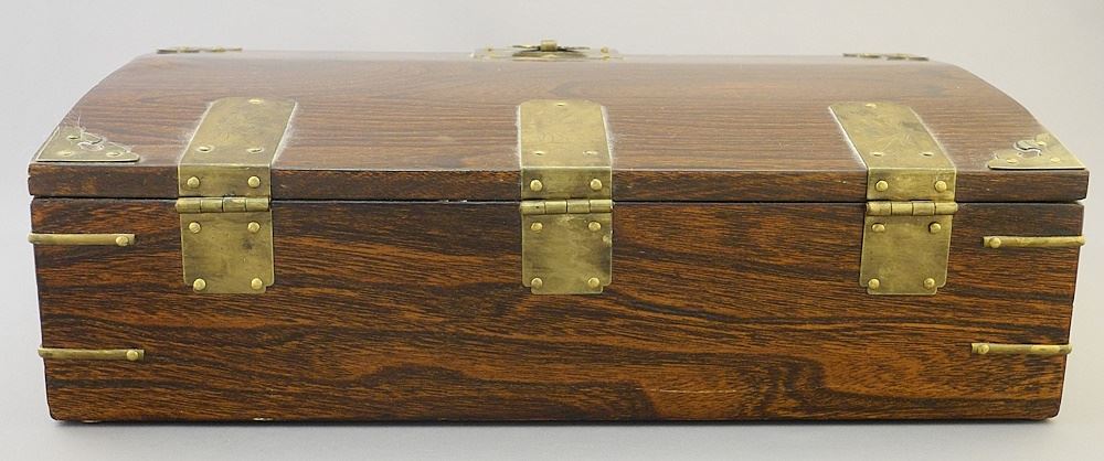 Asian Elm Brass Mounted Box, 4 1/8" x 14 1/2" x 9 1/4".