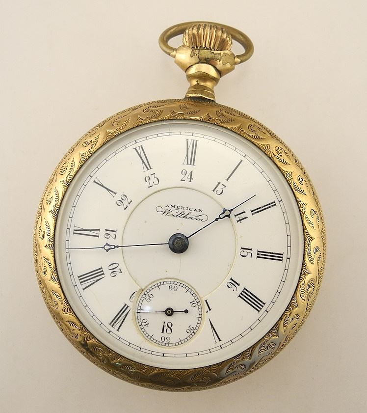 LOT 43 American Waltham Gold Plated Pocket Watch, 2 1/8" Diameter. Estimate: $200 - $300 Auction Date: Tuesday, February 27 2024 at 4:00 PM