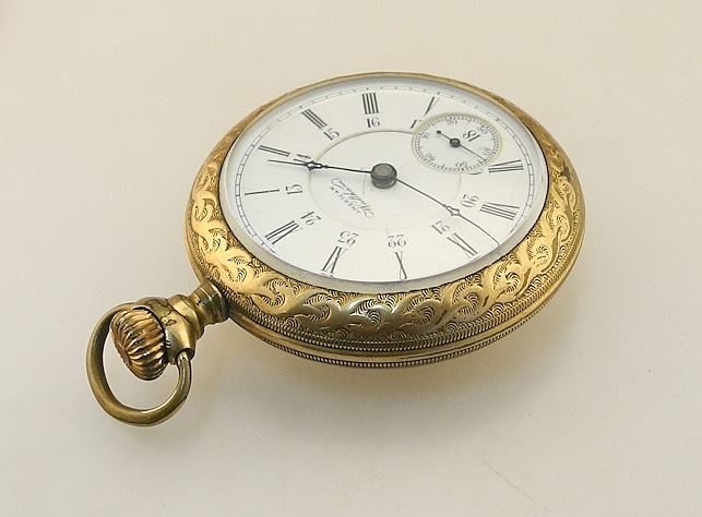 American Waltham Gold Plated Pocket Watch, 2 1/8" Diameter.