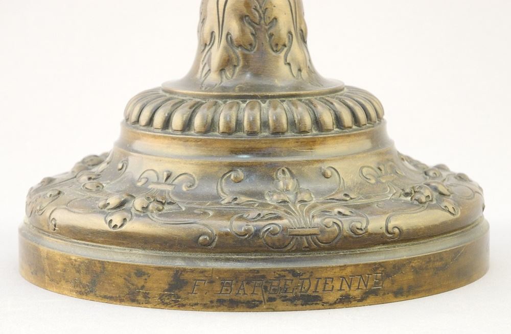 LOT 164 Pair of Bronze Candlesticks signed F. Barbedienne (Ferdinand), 8 1/2"H. Estimate: $200 - $400 Sold For: $200 Auction Date: Tuesday, April 30 2024 at 4:00 PM