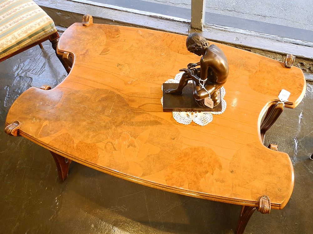 LOT 161 Marquetry Low Table Attributed to L. Majorelle, 18 3/4" x 36" x 23 1/4". Estimate: $300 - $500 Sold For: $225 Auction Date: Tuesday, April 30 2024 at 4:00 PM