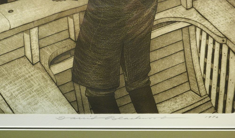 Etching with Aquatint signed David Blackwood 1976, 33 1/2" x 21 3/8", "Captain Jess Home from La
