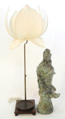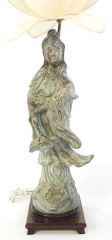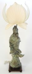 LOT 94 Verdigris Bronze Figure of Kwan Yin (22 1/4"H) on Lamp Base. Estimate: $250 - $350 Sold For: $200 Auction Date: Tuesday, April 30 2024 at 4:00 PM