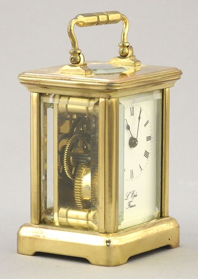 LOT 35 Miniature "L'Epee" Brass Carriage Clock with Original Box, 2 1/2"H. Estimate: $100 - $200 Sold For: $275 Auction Date: Tuesday, April 30 2024 at 4:00 PM