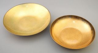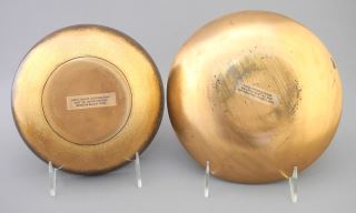 4 Enameled Copper Dishes signed Jade Snow Wong, 4 3/8" - 7 3/4" Diam.