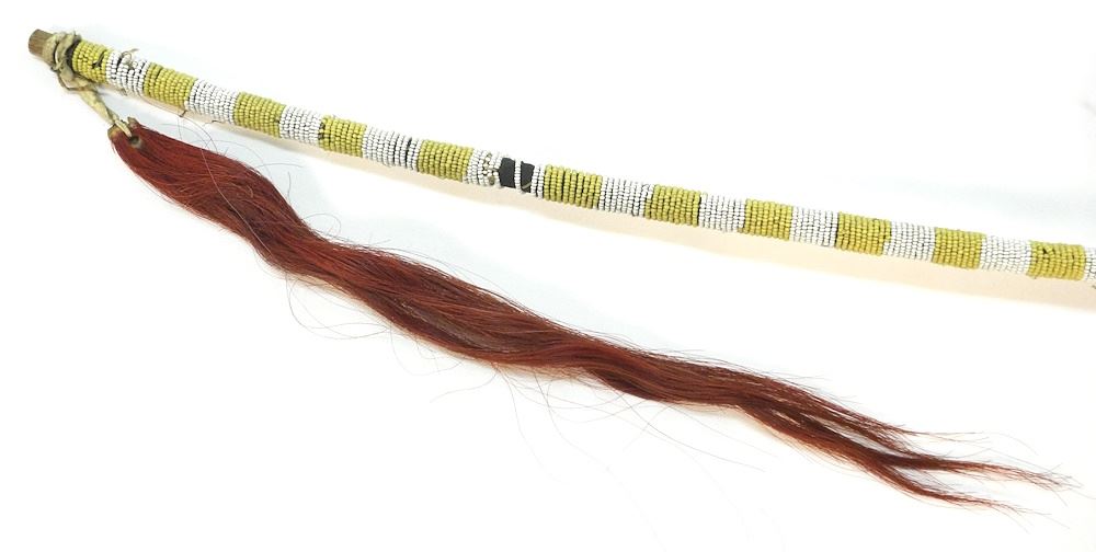 Northern Plains Beaded Ceremonial Skull Crusher with Red Horsehair, 36"L.