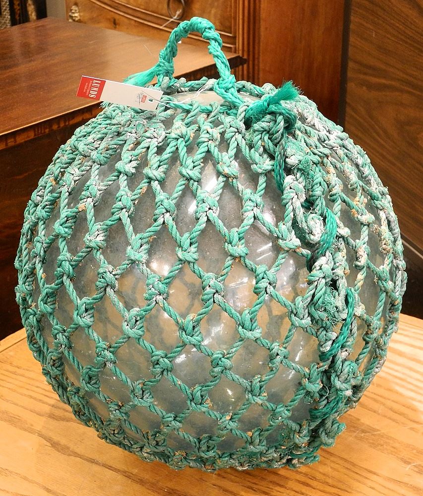 LOT 58 Net Wrapped Japanese Glass Fishing Float, 14" Diameter. Estimate: $200 - $300 Sold For: $225 Auction Date: Tuesday, April 30 2024 at 4:00 PM