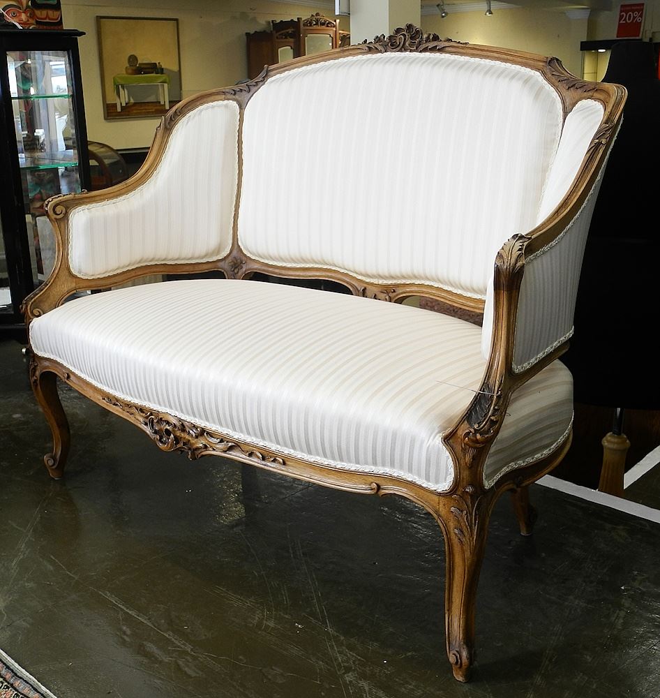 19th C. Louis XV 3 Piece Upholstered Beechwood Parlour Suite, Settee 45"W