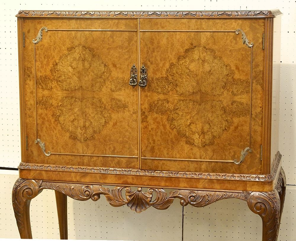 English Burl Walnut Liquor Cabinet, 45 1/2"H.