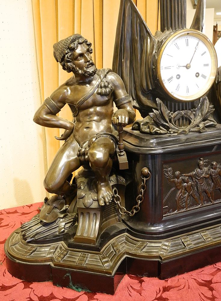 LeRolle Freres Paris Louis XVI Exhibition Clock, 29 1/2" Wide, losses at rear..