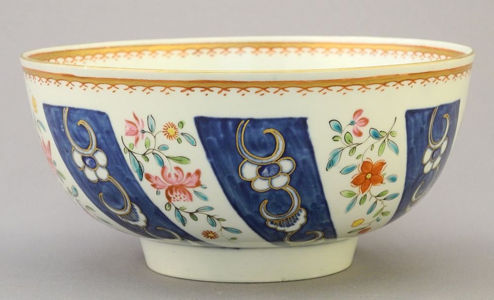 18th C. Worcester Trio (5 1/4" Diam) & Bowl, 5 7/8" Diam.