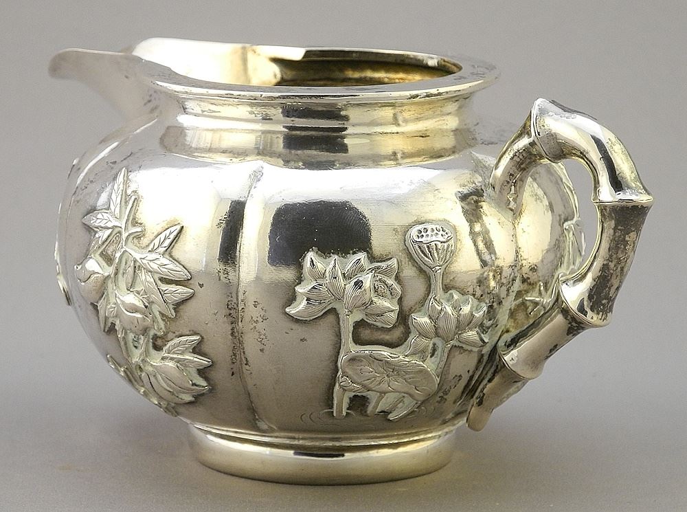 Tuck Chang Chinese Export Silver Cream Jug, 226 Grams, 5 3/4"L.