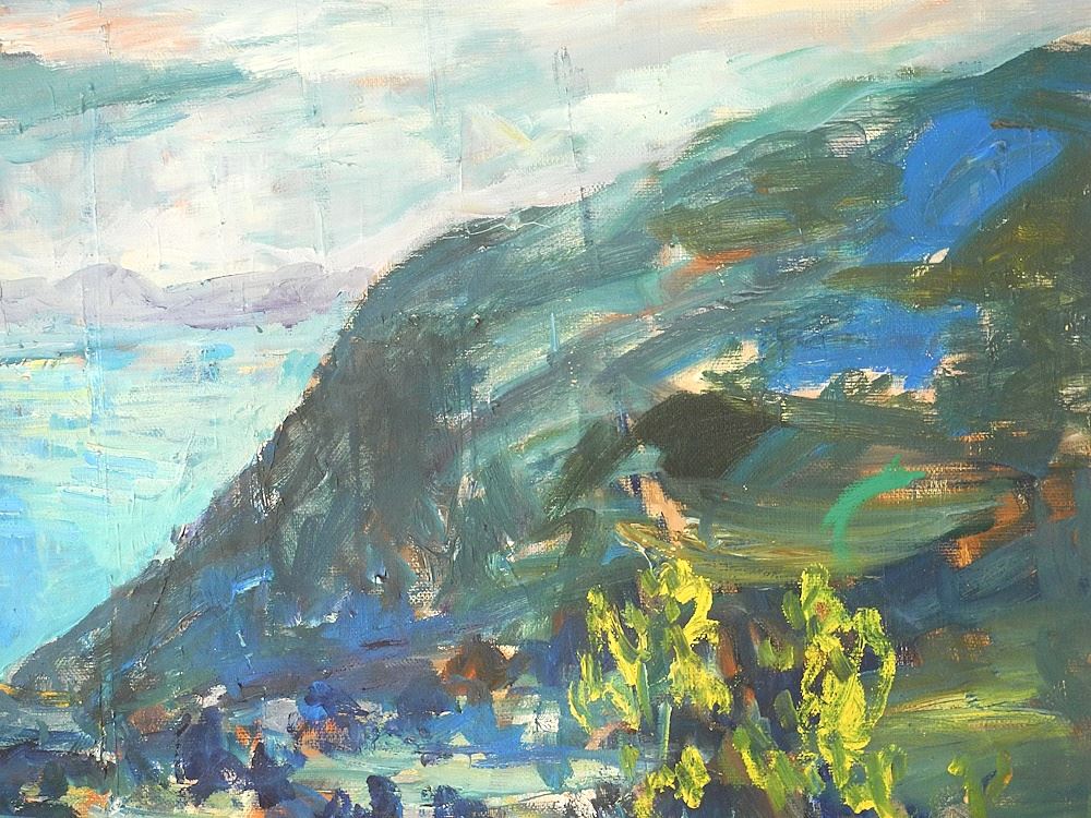 LOT 57 Oil on Canvas signed Hasan Djaafar 1919-95, 31 1/2" x 51 1/4", "Coastal Landscape". Estimate: $800 - $1,200 Auction Date: Tuesday, August 27 2024 at 4:00 PM