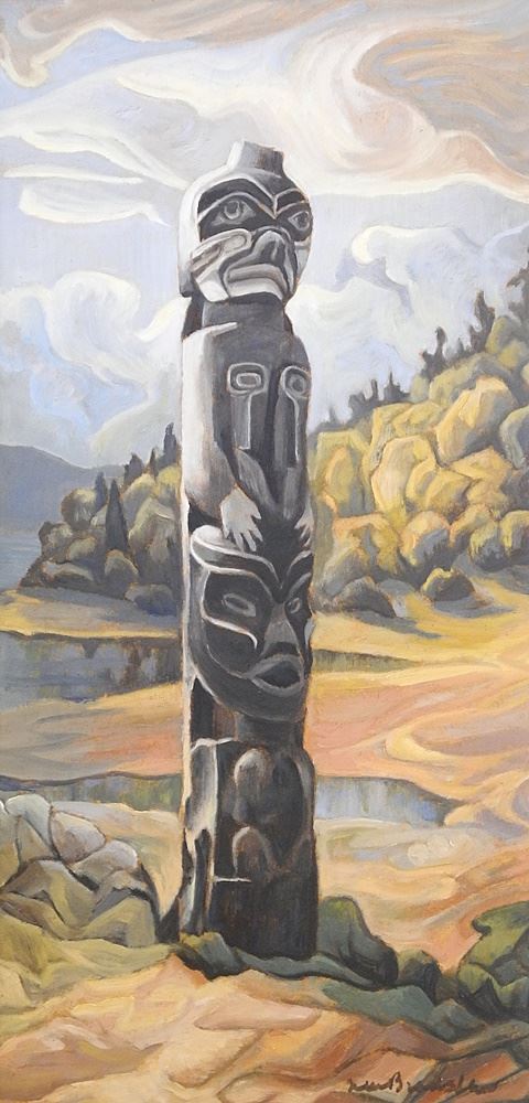 LOT 4 Oil on Board signed Nell Bradshaw, 24" x 12", "Kwakiutl House Post - Gilford Island". Estimate: $2,000 - $3,000 Sold For: $2,750 Auction Date: Tuesday, August 27 2024 at 4:00 PM