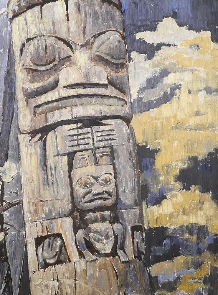 LOT 132 Oil on Board signed Nell Bradshaw, 24" x 32", "Old Haida Poles". Estimate: $2,000 - $3,000 Sold For: $2,000 Auction Date: Tuesday, August 27 2024 at 4:00 PM