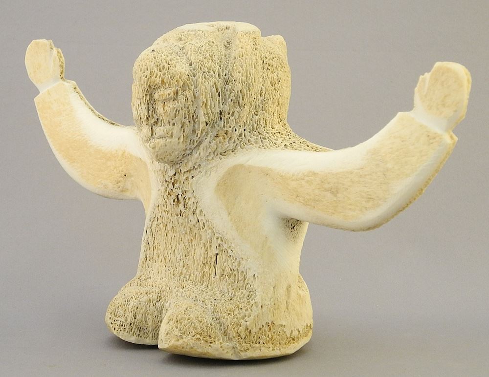 Unsigned Inuit Whale Bone Figure, 5" x 9 1/4" x 3".
