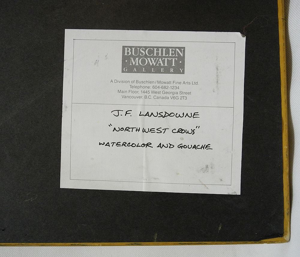LOT 27 Watercolour signed J. F. (James Fenwick) Lansdowne 1997, 18" x 24", "Northwest Crows". Estimate: $6,000 - $8,000 Auction Date: Tuesday, August 27 2024 at 4:00 PM