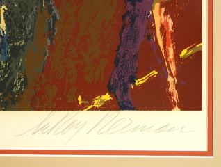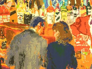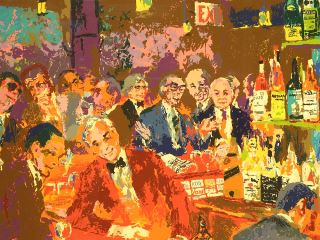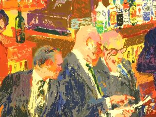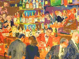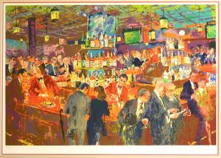 Serigraph signed Leroy Neiman, 50" x 39", "Harrys Wall Street Bar" #165/600.