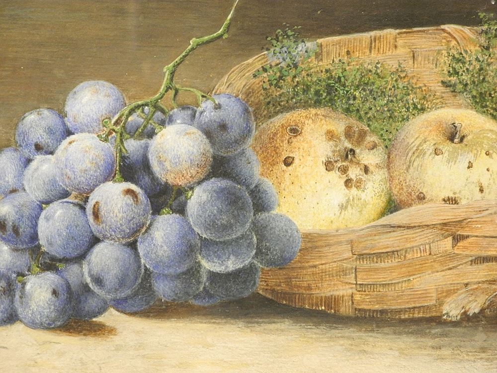 LOT 133 Watercolour signed E. (Edwin) Deakin 186*, 6 7/8" x 8 7/8", "Basket with Grapes & Apples". Estimate: $300 - $500 Auction Date: Tuesday, August 27 2024 at 4:00 PM