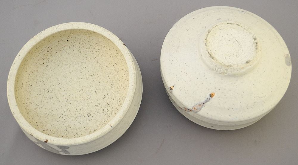 Stoneware Covered Vessel with Impressed Mark of Wayne Ngan, 4 3/4" x 5 3/4" Diam. with Stand
