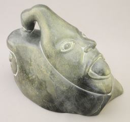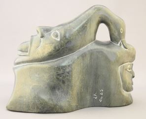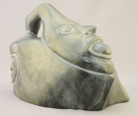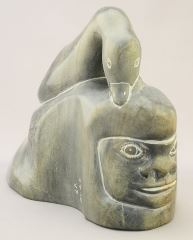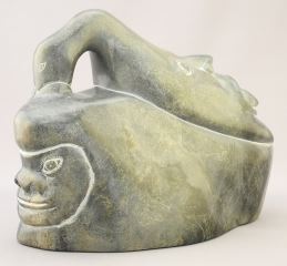 Inuit Stone Sculpture signed (Jobie) Arnattuk, 6 1/4" x 8 1/4" x 4 3/4", "Goose Transformation".