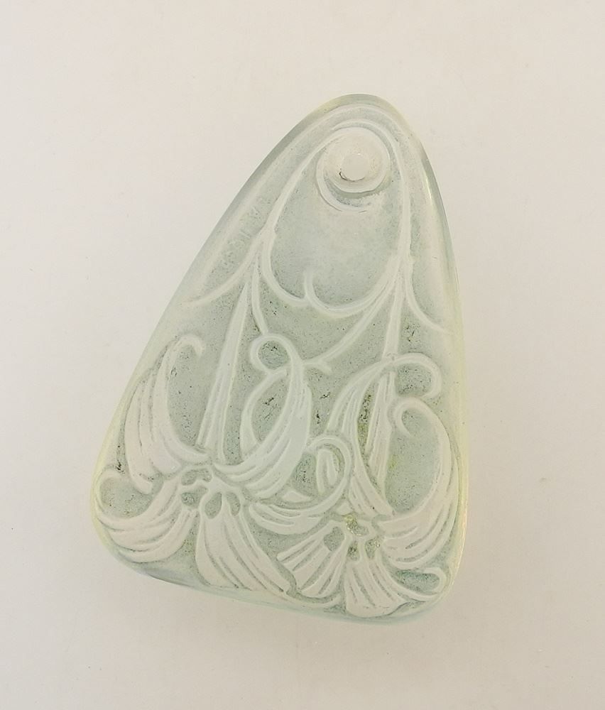 Lalique "Lys" Blue Stained Glass Pendant, Signed, 2 1/8" High