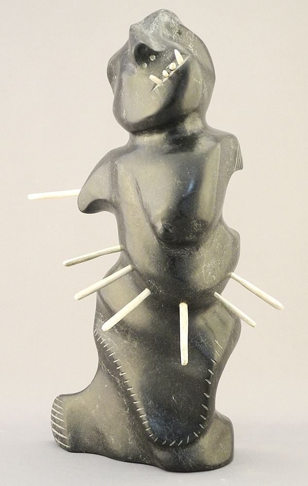 LOT 15 Inuit Stone Carving signed George Arlook 1994, 12" x 6" x 3 3/4". Estimate: $300 - $500 Sold For: $300 Auction Date: Tuesday, August 27 2024 at 4:00 PM