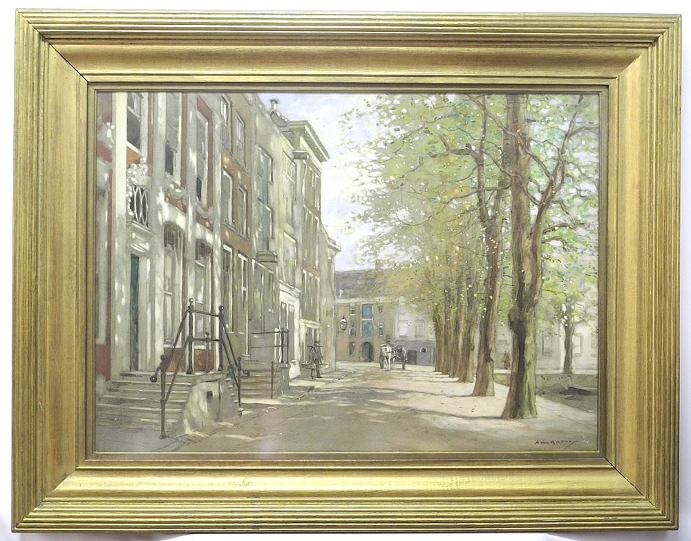 Watercolour signed A. (Anton Abraham) Van Anrooy, 21" x 29 1/2", "Canal in Dordrecht".