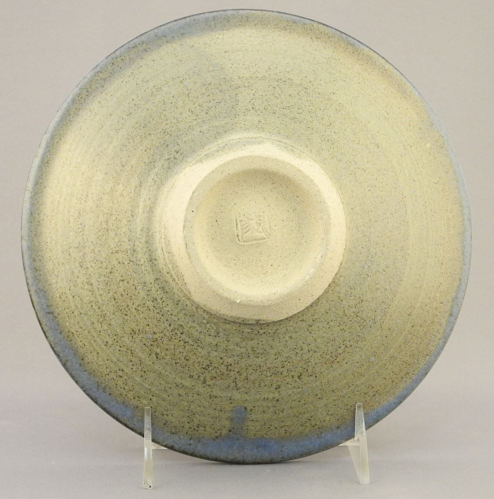 Stoneware "Crab" Dish signed with Impressed Mark of Wayne Ngan, 2" x 8" Diameter.