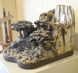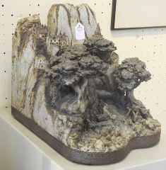 LOT 26 Pottery Diorama signed Neil Dalrymph 1980, 11 1/4" x 11" x 14 1/8", Fantasy Landscape with Tro Estimate: $300 - $500 Sold For: $300 Auction Date: Tuesday, August 27 2024 at 4:00 PM