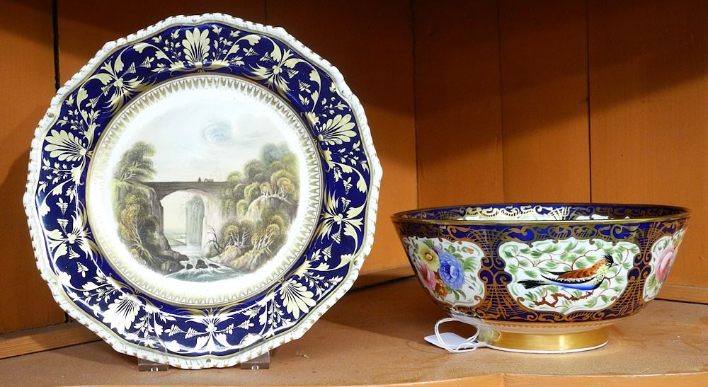 Mid 19th C. English China Bowl (7 7/8" Diam.) & 3 Plates, 9 1/4" Diam.