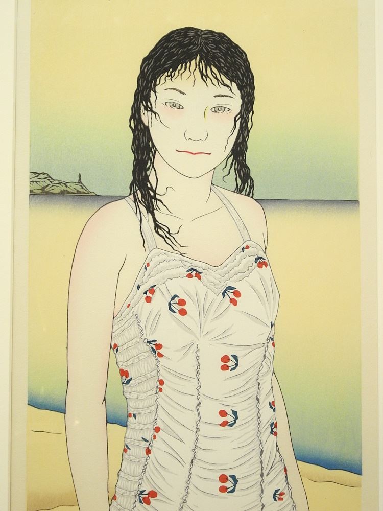 Colour Woodblock Print signed (Rynsei) Okamoto, 22 3/4" x 8 5/8", "First Love #27", #4/350.