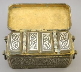 Silver Inlaid Bronze Betel Nut Box.