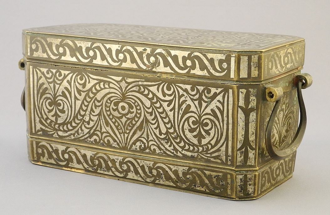 LOT 137 Silver Inlaid Bronze Betel Nut Box. Estimate: $200 - $300 Sold For: $450 Auction Date: Tuesday, August 27 2024 at 4:00 PM