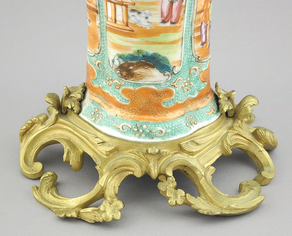 18th C. Chinese Vase (11 7/8"h) Mounted as a Lamp Base, TH 13 1/4"h (base chipped & drilled).