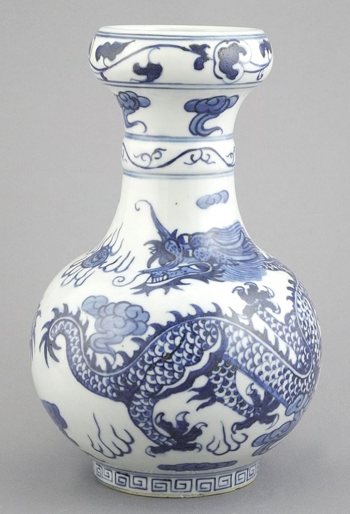 Chinese Blue & White Porcelain Vase, Kangxi Mark, 7 1/2"h.