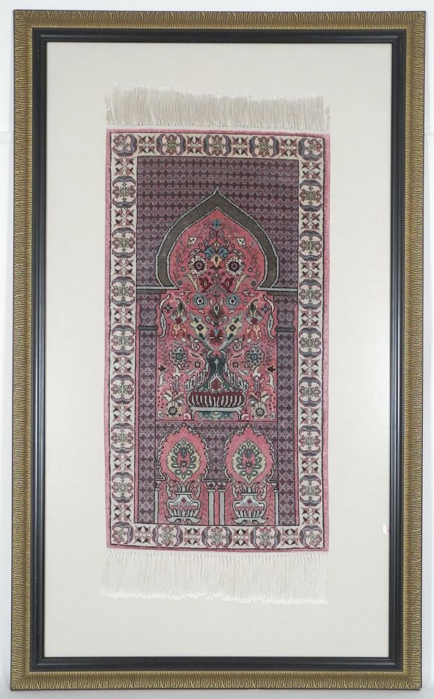 Persian Silk Prayer Mat Approx. 44" x 19", Framed.