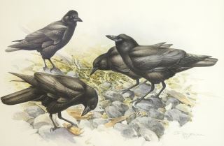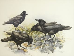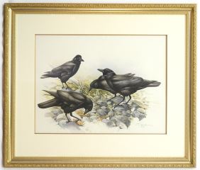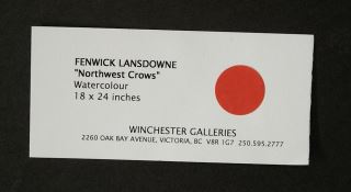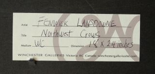 LOT 93 Watercolour signed J. F. (James Fenwick) Lansdowne 1997, 18" x 24", "Northwest Crows". Estimate: $5,000 - $7,500 Sold For: $5,000 Auction Date: Tuesday, October 22 2024 at 4:00 PM